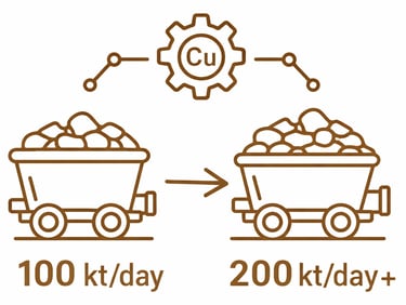 Operations that moved 100 kt/day now require 200 kt/day+ to recover equivalent metal.