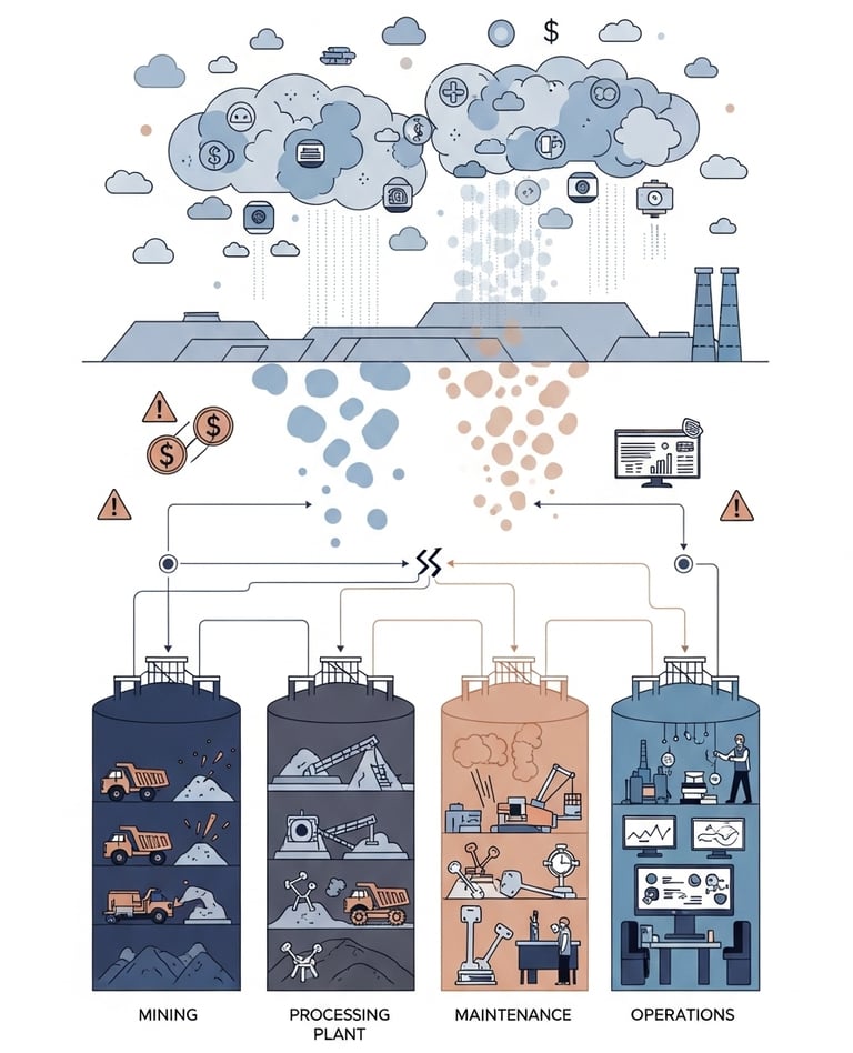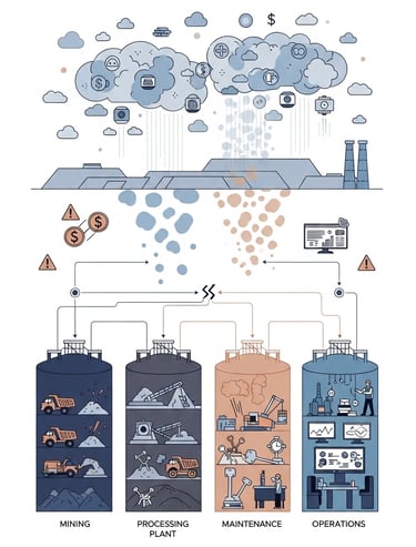 Mining operations rarely optimize as unified systems. Your team tracks tonnes moved. Your mill team optimizes recovery rates. Your maintenance team manages downtime. Each group succeeds locally, whilst the overall operation underperforms.